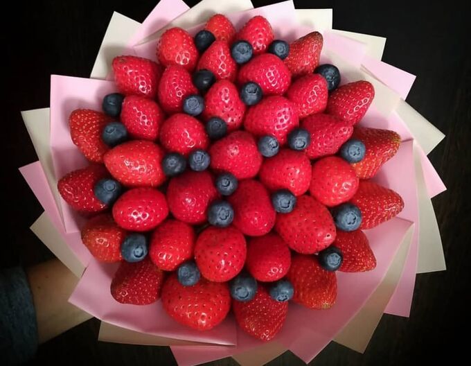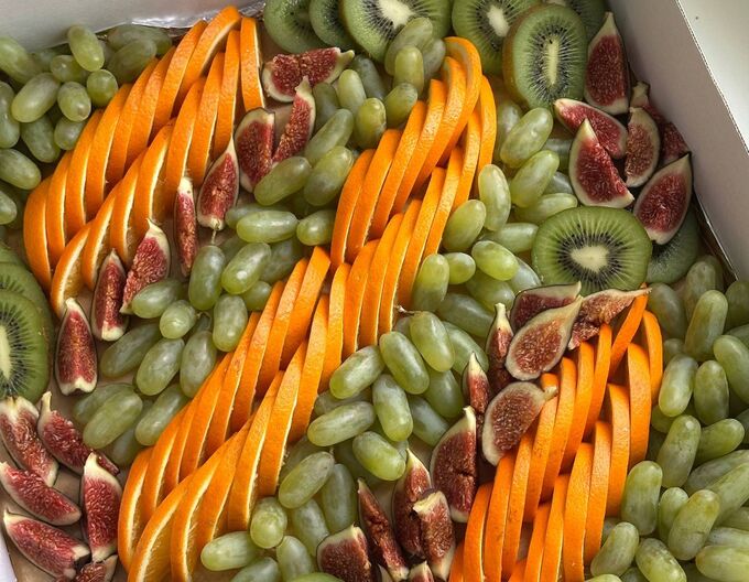 Виноград, апельсин, киви, мандарины, бананы, яблоки, клубника, голубика, гранат, маракуйя.