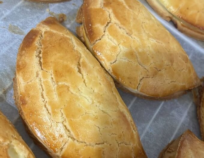 Слоеное тесто, мука, соль, масло сливочное, зелёный лук.