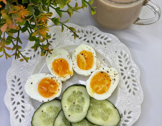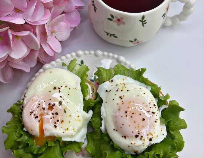 Батон, творожный сыр, помидоры, лист салата, яйцо.