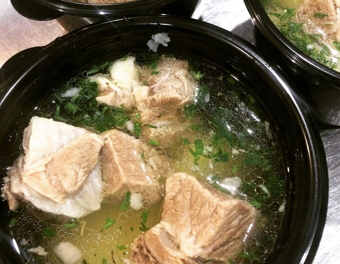 Говяжьи ребрышки, лук, морковь, картофель, зелень.