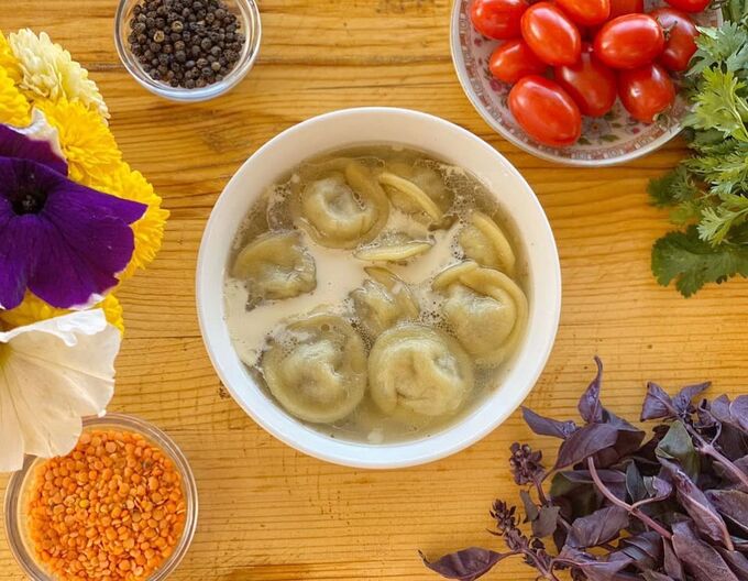 Мука, соль, говядина, лук, перец молотый, зелень.