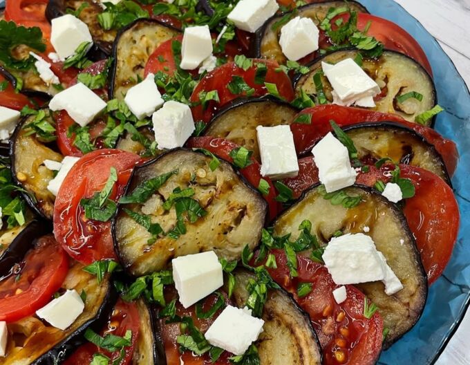 Жареные баклажаны со свежим помидором и сыром "Моцарелла"