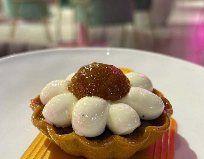 Жасминовый мусс, конфи манго-маракуйя, кокосовый крем и мармелад манго.